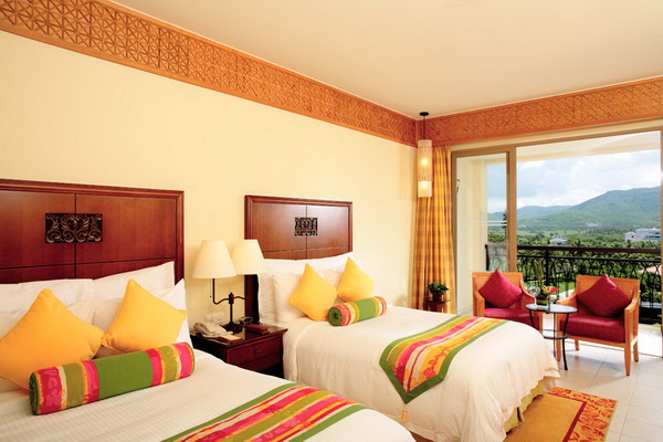 三亞萬豪度假酒店由世界知名公司W(wǎng)ilson & Associates設(shè)計。來自新加坡的設(shè)計師大膽自由的采用天然原石與暖色調(diào)木質(zhì)材料,結(jié)合當(dāng)?shù)孛匀说淖匀伙L(fēng)景和質(zhì)樸的風(fēng)土人情襯托出其自然、時尚的獨(dú)特風(fēng)格。酒店絕大部分客房均設(shè)有特大觀景陽臺,將潔白細(xì)軟的海灘、景色怡人的園林、優(yōu)美的山光水色、高爾夫球場景致一覽無遺?头績(nèi)部裝修舒適溫馨,從房間設(shè)施到小物品擺設(shè)都將感受到三亞萬豪度假酒店用“心”之處。三亞萬豪度假酒店引以為傲的水療中心“泉”座落在一片寧靜的園林中。五座相對獨(dú)立的豪華水療閣,透過花園更能遠(yuǎn)眺美麗的南中國海景。精心準(zhǔn)備的療程項目包括美顏?zhàn)o(hù)理、身體理療、按摩護(hù)理和精選水療套裝,為您從內(nèi)至外打造煥然一新的感覺。美酒佳肴在三亞萬豪度假酒店更是隨處可見。萬豪軒中餐廳傳統(tǒng)精篆的中式佳肴;全新江戶銀日餐廳舒適柔和的色彩與傳統(tǒng)的日式裝修風(fēng)格相得益彰,寬敞的座位空間營造舒適的就餐環(huán)境。伴隨著優(yōu)雅的日式音樂,品嘗具有現(xiàn)代感的日式美食,開放獨(dú)立的特色專區(qū)為您展示日式美食的制作過程;萬豪咖啡廳豐富的中西零點(diǎn)菜單和美味的自助餐;海韻風(fēng)情吧清涼飲料和迷人海景給予味覺和視覺無限享受。每間餐廳和酒吧都能滿足您挑剔的胃口。偏愛戶外的朋友也無需擔(dān)心,因為所有餐廳設(shè)有戶外雅座,讓您在享受美食的同時感受微微海風(fēng)的輕拂。得天獨(dú)厚的自然環(huán)境,令人垂涎的美酒佳肴,多姿多彩的娛樂活動,加上完善的會議設(shè)施,三亞萬豪度假酒店迅速成為舉辦各種活動和商務(wù)會議的最佳場所。擁有11間會議室,總面積達(dá)1250平方米。無柱豪華宴會廳,可分隔成五部分,另外六間會議室滿足中小型商務(wù)會議需求。高素質(zhì)的會議統(tǒng)籌隊伍,熱情悉心的宴會服務(wù),為會議圓滿召開提供最佳保障。親臨亞龍灣領(lǐng)略“天下第一灣”真正魅力所在,親臨三亞萬豪度假酒店體驗夢寐以求的悠閑假期。