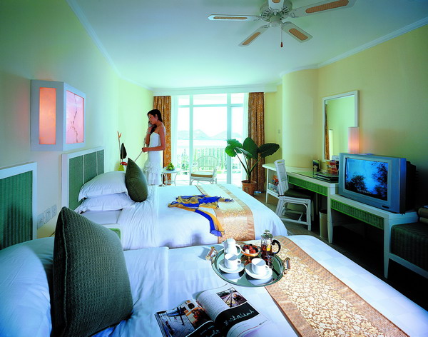 高級海景房,面積35平方米,樓層2-9層,無陽臺,30-50度海景大床(2*2米),雙標(biāo)(1.35*2米),無浴缸 免費寬帶