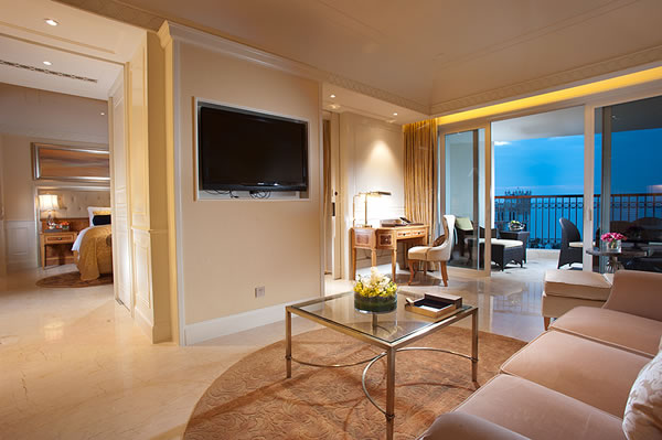 三亞財富海灣大酒店位于風(fēng)景優(yōu)美的三亞灣臨海一線黃金海景地段,酒店緊鄰規(guī)劃中的三亞新城,北鄰三亞市鳳凰國際機場約4公里,西距天涯海角風(fēng)景度假區(qū)約8公里,南與三亞灣西島——玳瑁島隔海相望,并與三亞市機場、旅游區(qū)共同構(gòu)成大會議旅游度假圈,是理想的度假休閑、商務(wù)會議之地。酒店占地約5.5萬平米,建筑面積逾9萬平米,共391套豪華酒店房(含頂級總統(tǒng)套),83套族系公館, 3套頂級獨棟別墅。酒店結(jié)合三亞當(dāng)?shù)貧夂蚝惋L(fēng)俗,遵循財富聯(lián)合集團“高端精品”產(chǎn)品定位,邀請國際著名設(shè)計公司運用國際上最先進(jìn)的設(shè)計理念,按照白金五星級酒店標(biāo)準(zhǔn)興建,具有濃厚的熱帶風(fēng)情。景觀設(shè)計采用了法國現(xiàn)代古典主義風(fēng)格,突出洛可可的華麗與奢華。酒店特設(shè)三亞罕見的2000平米豪華迎賓大堂,步入其中便能立刻感覺到如盛宴現(xiàn)場般的奢華感受。酒店擁有高檔中、西餐廳,韓式料理餐廳,及提供各式美酒、鮮榨果汁、茶點和健康小吃的特色酒吧、大堂吧,讓賓客充分感受熱帶的氛圍;完善的酒店獨享沙灘、健身娛樂設(shè)施、及酒店SPA所提供的泰式等各式愜意自在的按摩,將使您充分享受所有的三亞時光,難以忘懷。同時,三亞頂級的會議廳,及專業(yè)團隊將為您提供一站式會務(wù)服務(wù)。會議廳內(nèi)部設(shè)施齊全,功能完善,是舉辦商務(wù)會議的理想之選。酒店還擁有可容納380人的豪華宴會廳—國王宴會廳,是為財富領(lǐng)袖量身定制的專屬配置,無論是頂級規(guī)格的私人聚會,還是層峰匯聚的商務(wù)晚宴,都能在此得到完美呈現(xiàn)。