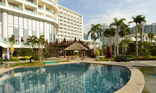 三亞龍悅海景大酒店是由北京鑫地集團(tuán)投資興建,是一家集旅游度假、商務(wù)休閑于一體的高端復(fù)合型精品海景酒店。酒店位于中國海南島南端的三亞市三亞灣西岸,俯瞰壯麗的三亞灣海景和西島, 距三亞鳳凰國際機場10分鐘車程, 距離市區(qū)僅8分鐘車程;酒店建筑面積35000平方米,與著名的天涯海角、 南山佛教文化苑、 南山大小洞天、 西島和三亞國際高爾夫球場近在咫尺。酒店擁有各式海景房、海景套房共344間(套),均配有液晶電視、智能空調(diào)、頂級床上用品,配以超大觀景陽臺,可一覽海天之間的蔚藍(lán)深韻。
